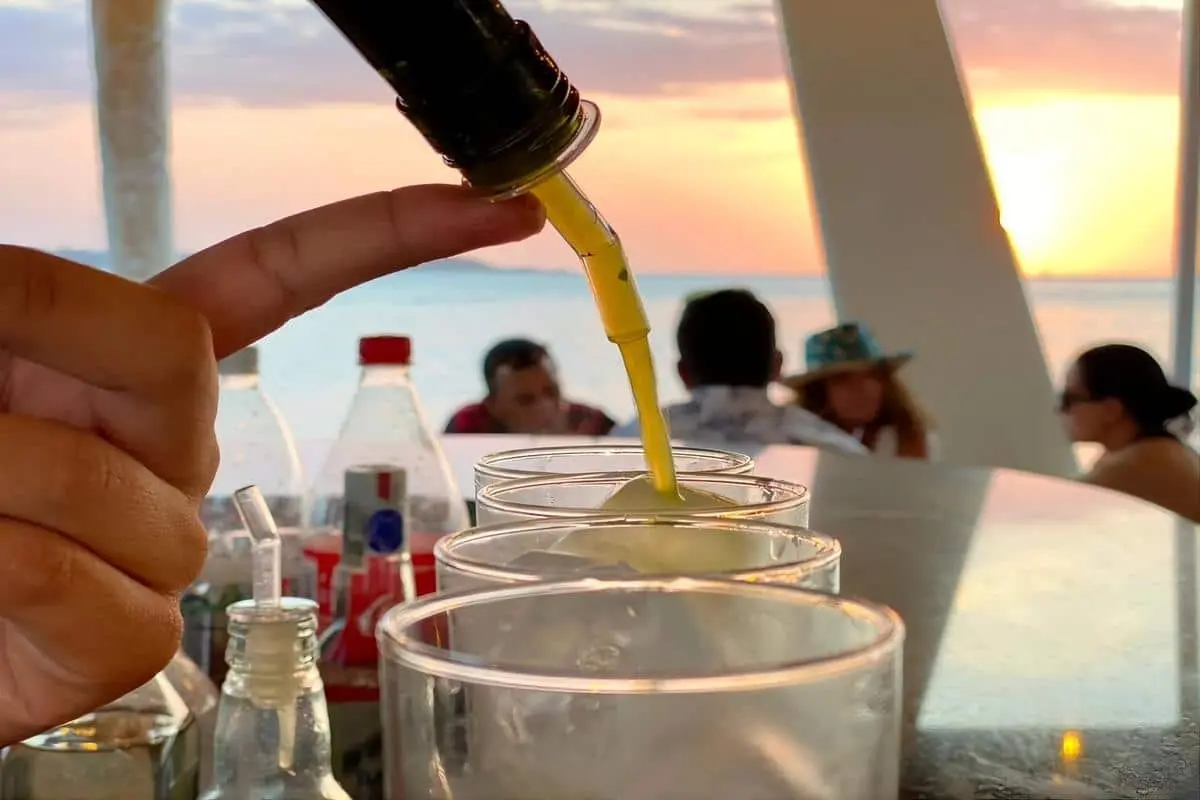 Los cócteles tropicales, elaborados con sabores caribeños, complementan la experiencia sensorial del sunset y aportan el toque festivo que caracteriza este plan.