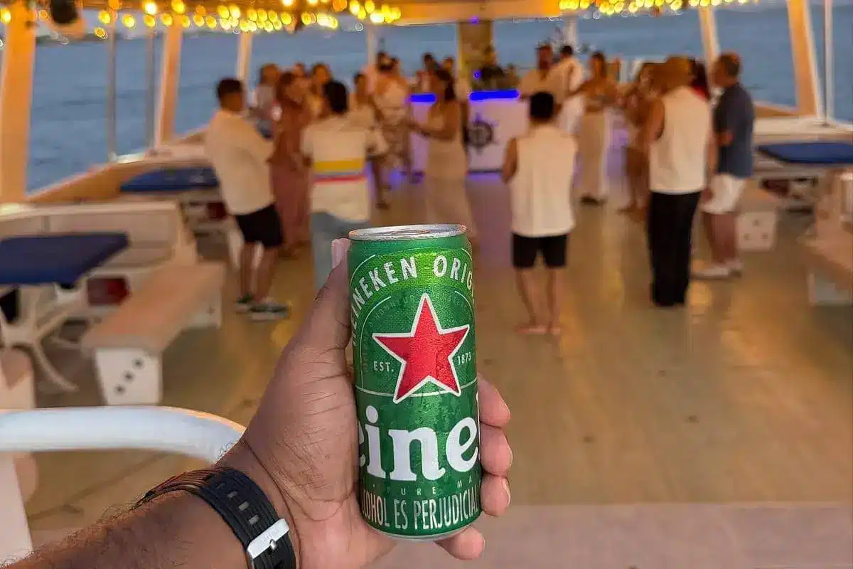 Mientras el catamarán navega por la bahía, el DJ en vivo crea una atmósfera vibrante con ritmos caribeños, música latina, electrónica y éxitos internacionales.